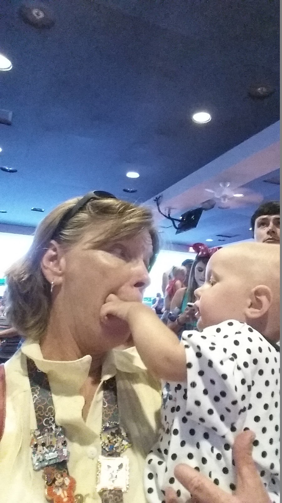 "As we waited in line for the "Frozen Sing-a-Long" Annabelle stayed with Grandma,