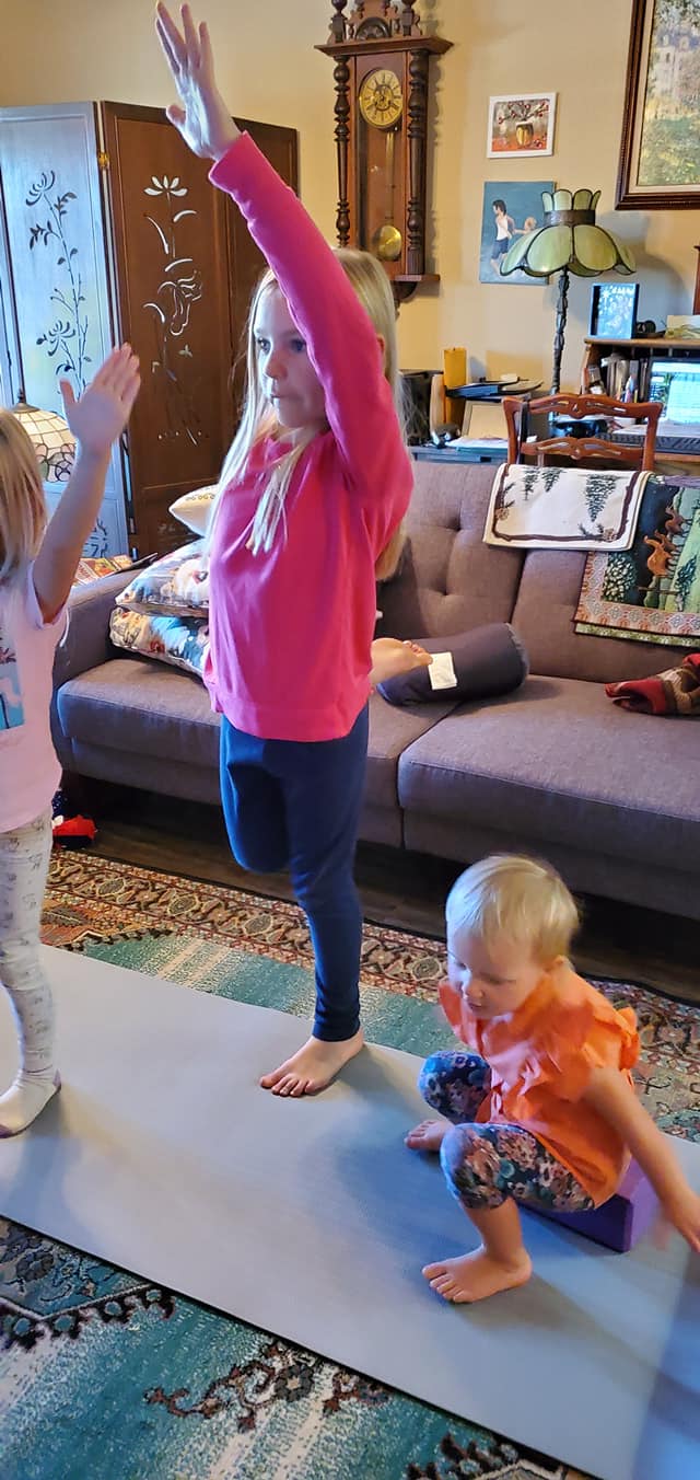 Yoga with the kids (Avery is quite fun to watch when doing her poses).