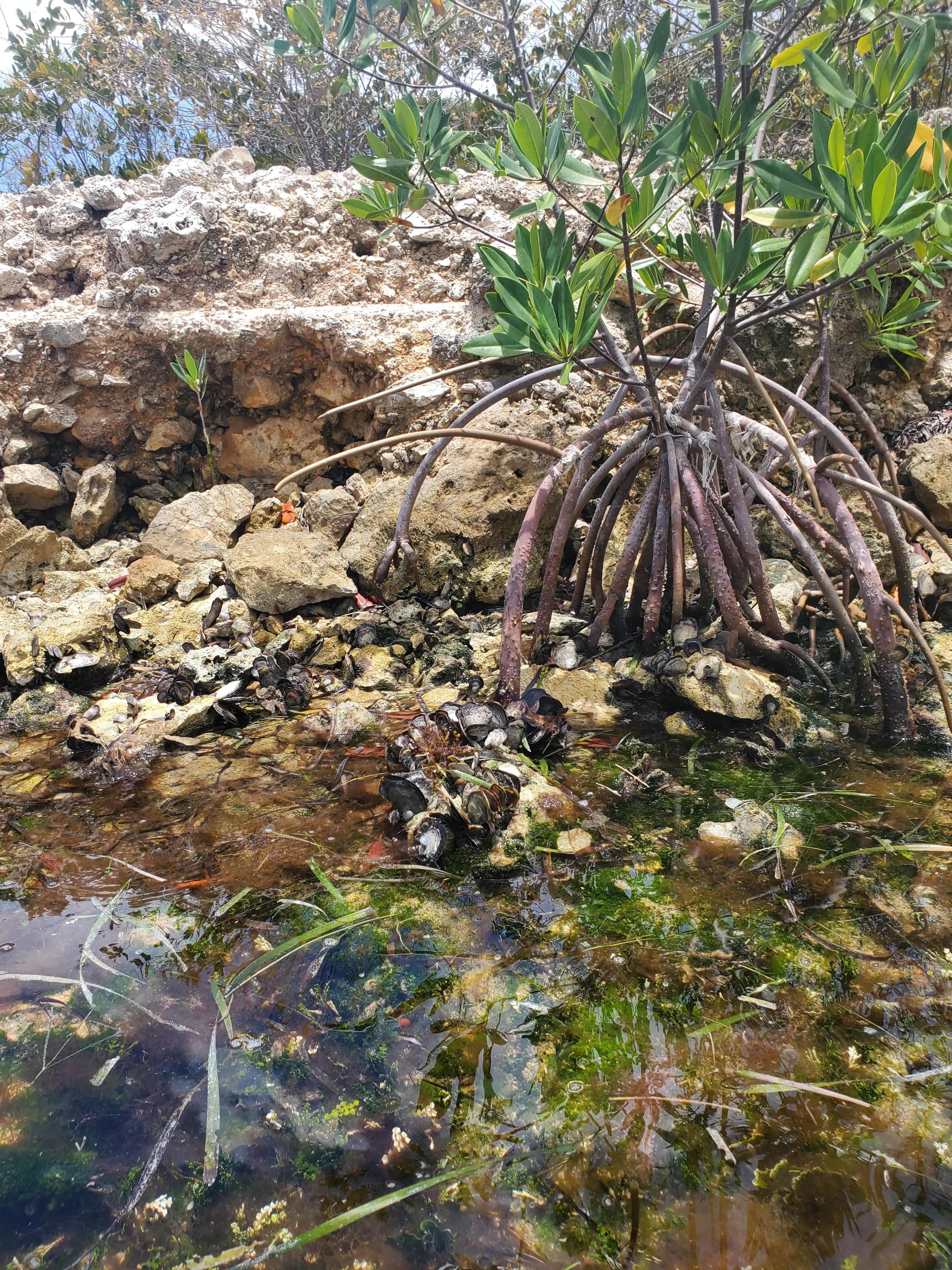 In the Mangroves we say the oysters growing all around the roots, small fish, and baby barracudas along with other wildlife.